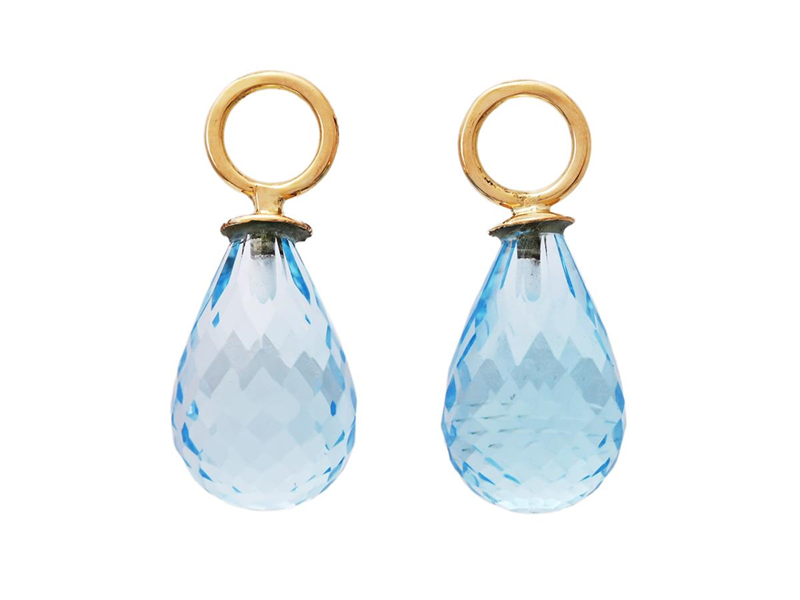 EARRINGS ATTACHMENTS, 2 items, 18K gold, briolette cut blue topazes approx. 12,0 x 8,0 mm, loop 4,0 mm, height 19,0 mm, weight 3,1 g.