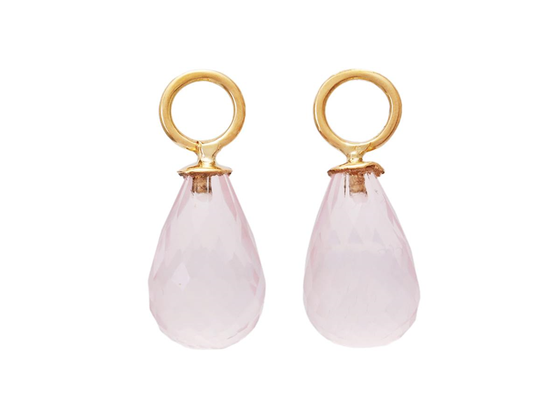EARRINGS ATTACHMENTS, 2 items, 18K gold, briolett cut rose quartz approx. 12,0 x 8,0 mm, loop 4,0 mm, length 19,0 mm, weight 2,4 g.