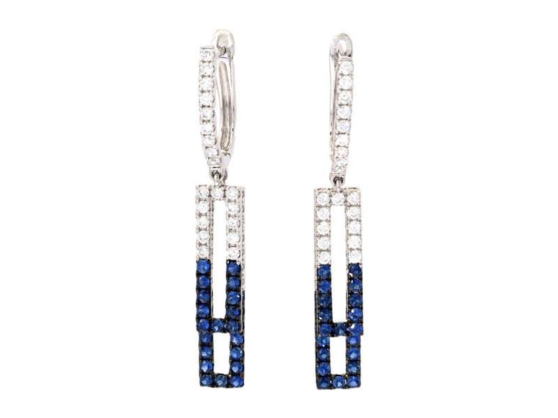EARRINGS, 18K white gold, partly black rhodium plated, sapphires 0,77 ctw, brilliant cut diamonds approx. 0,86 ctw, approx. TW-W/VS-P, weight 4,3 g, pushback.