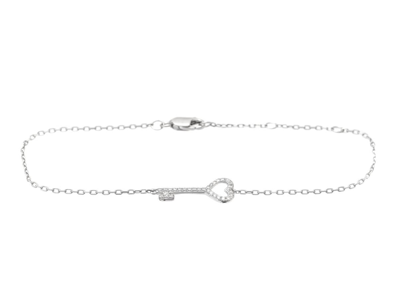 BRACELET, 18K white gold, key with heart, brilliant cut diamonds 0,12 ctw, approx. TW-W/VS-SI, length 15,5/17/18,5 cm, weight 1,2 g.
