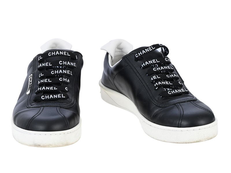 SHOES, CHANEL, Logo CC, black, white leather, size 35½, sole 3 cm, dustbag.