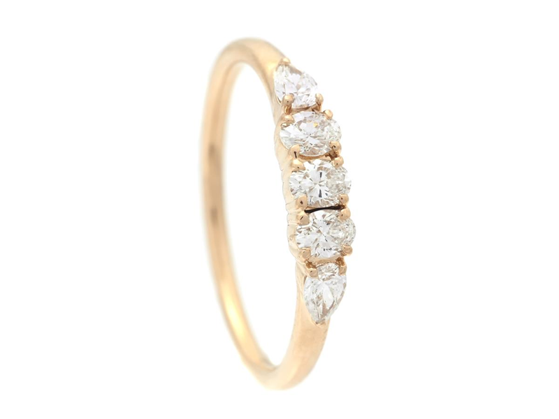 RING, 18K gold, 3 oval brilliant cut diamonds 0,26 ctw, 2 drop shaped brilliant cut diamonds 0,16 ctw, approx. TW/VS, size 16,75 mm, weight 2,0 g.