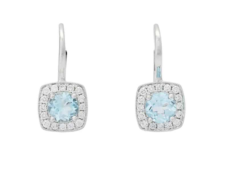 EARRINGS, 18K white gold with 2 items blue topazes 1,21 ctw, 32 brilliant cut diamonds 0,28 ctw, approx. TW-W/SI, closeable hook, weight 3,2 g