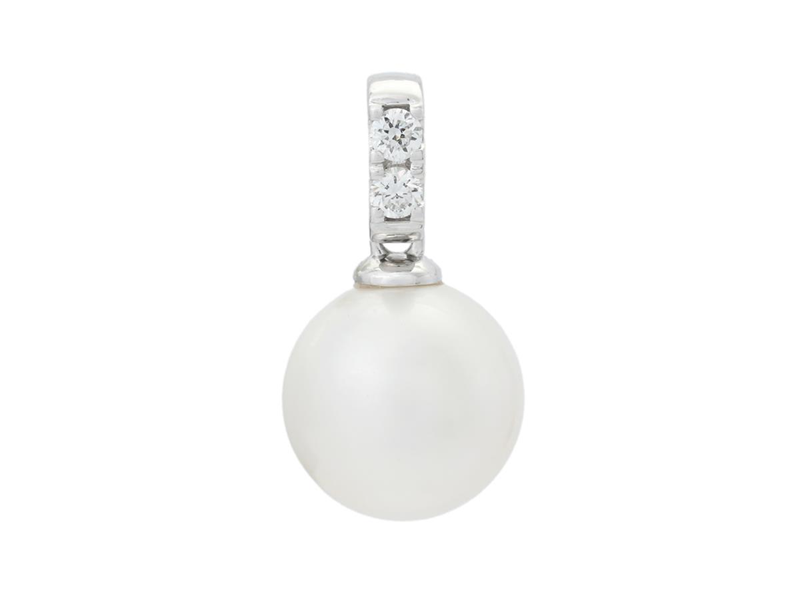 PEARL PENDANT, 18K white gold, cultured freshwater pearl approx. 9,1 mm, 2 brilliant cut diamonds 0,06 ctw, approx. TW/VS, length 16,0 mm, weight 1,5 g.