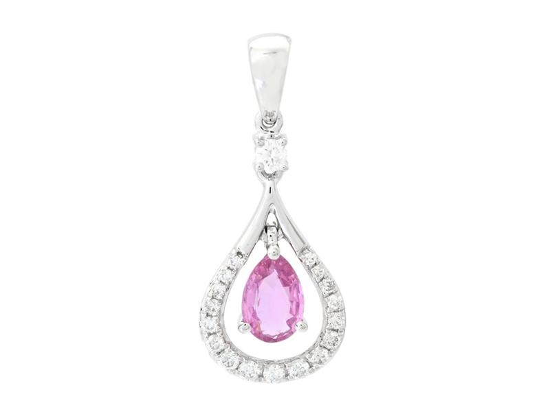 PENDANT, 18K white gold with pink sapphire 0,41 ct, 18 brilliant cut diamonds 0,15 ctw, approx. W/SI, weight 1,4 g