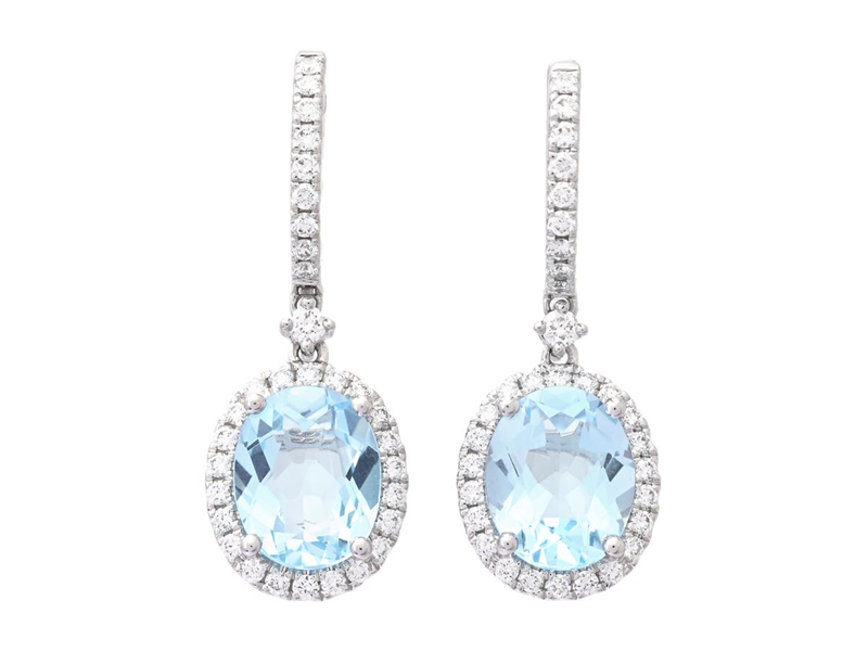 EARRINGS, 18K white gold with oval blue topaz 6,01 ctw, 64 brilliant cut diamonds 0,67 ctw, weight 6,3 g, huggies,
