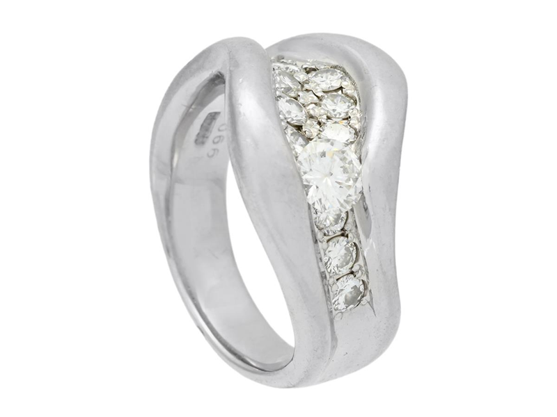 RING, platinum, brilliant cut diamonds approx. 1,05 ctw, approx. TW/VS-P, size 17,75 mm, weight 18,0 g, center stone with natural on the girdle/pavilion.