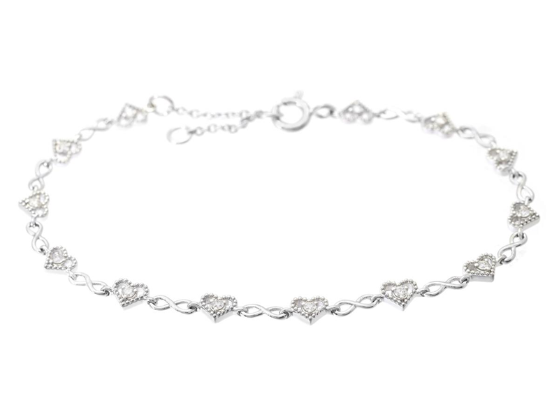 BRACELET, 18K white gold, hearts and infinity symbols, 13 brilliant cut diamonds 0,19 ctw, approx. TW-W/VS-SI, length 15/16,5/18 cm, weight 3,6 g.