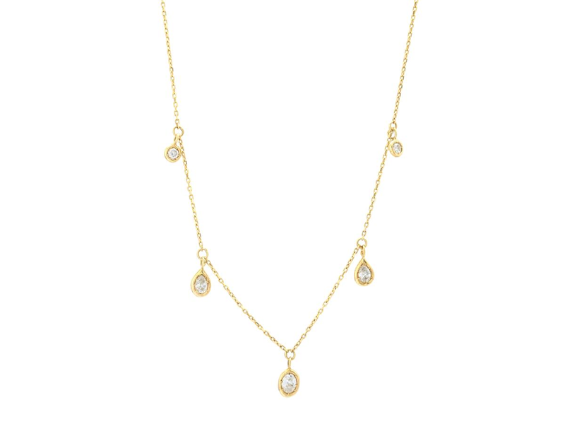 NECKLACE, 18K gold, 5 oval - , drop - and brilliant cut diamonds approx. 0,60 ctw, approx. W-TCr/VVS-VS, length 38-40 cm, weight 2,7 g.