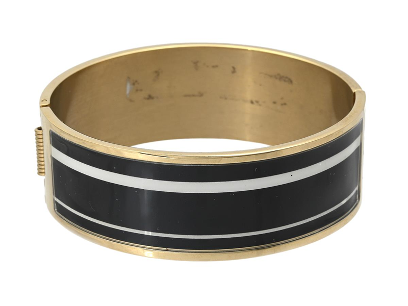 DYRBERG KERN, bangle, yellow metal, black enamel, inner measurement 5,5 cm x 5 cm, weight 46,0 g.