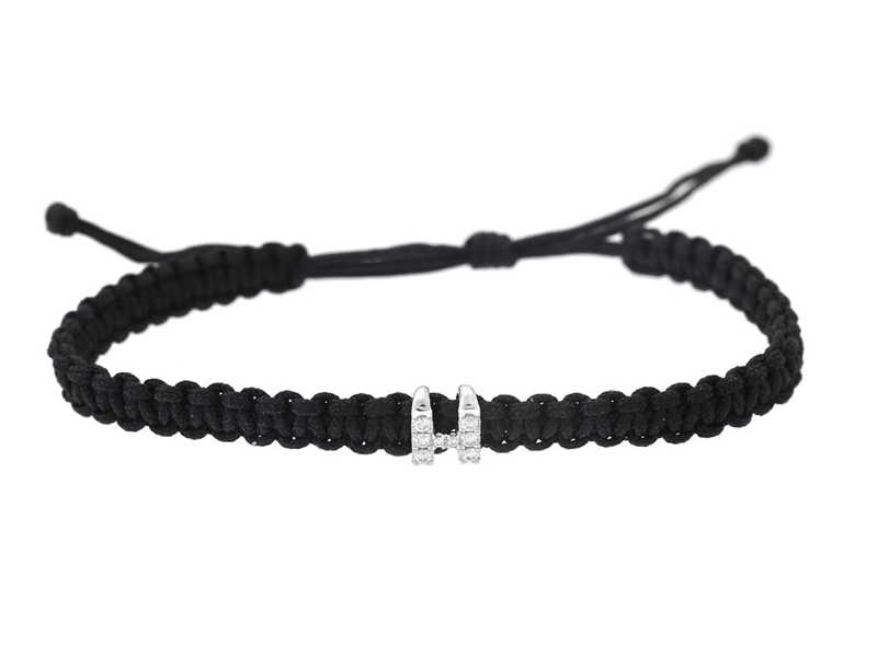 LETTER BRACELET, letter H, 18K white gold, 8 brilliant cut diamonds 0,05 ctw, approx. W/VS-SI, black nylon thread, adjustable length, weight 1,0 g.