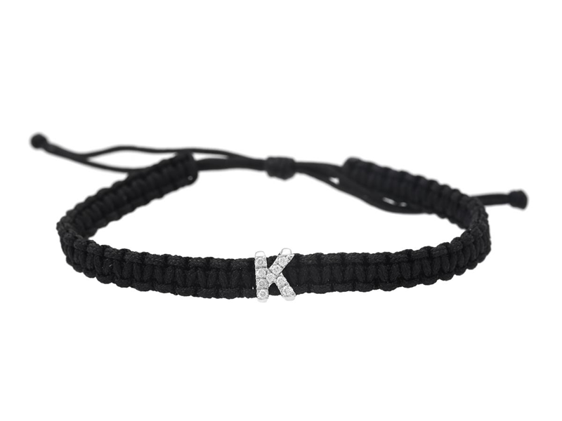 LETTER BRACELET, letter K, 18K white gold, 9 brilliant cut diamonds 0,05 ctw, approx. W/VS-SI, black nylon thread, adjustable length, weight 1,1 g.