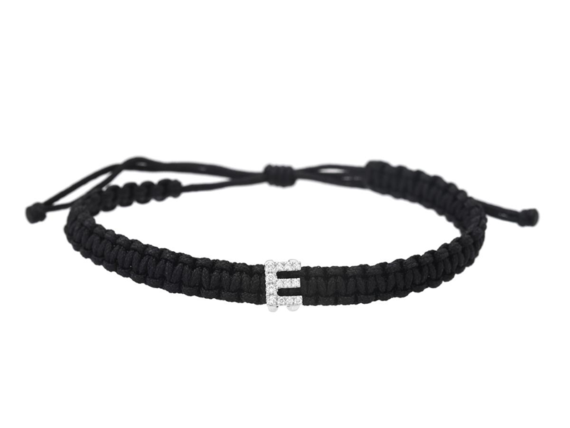 LETTER BRACELET, letter E, 18K white gold, 13 brilliant cut diamonds 0,05 ctw, approx. W/VS-SI, black nylon thread, adjustable length, weight 1,0 g.