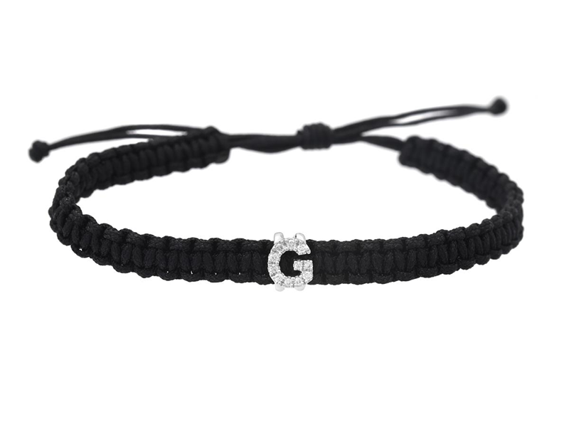 LETTER BRACELET, letter G, 18K white gold, 11 brilliant cut diamonds 0,05 ctw, approx. W/VS-SI, black nylon thread, adjustable length, weight 1,0 g.