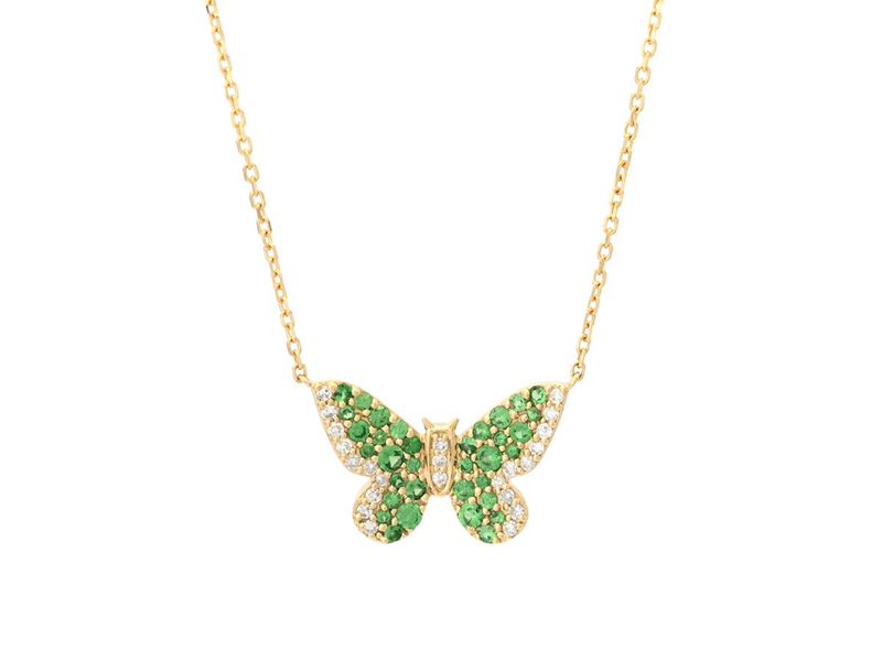 NECKLACE, butterfly, 18K gold with tsavorites 0,50 ctw, single cut diamonds 0,14 ctw, length 40/45 cm, weight 3,2 g