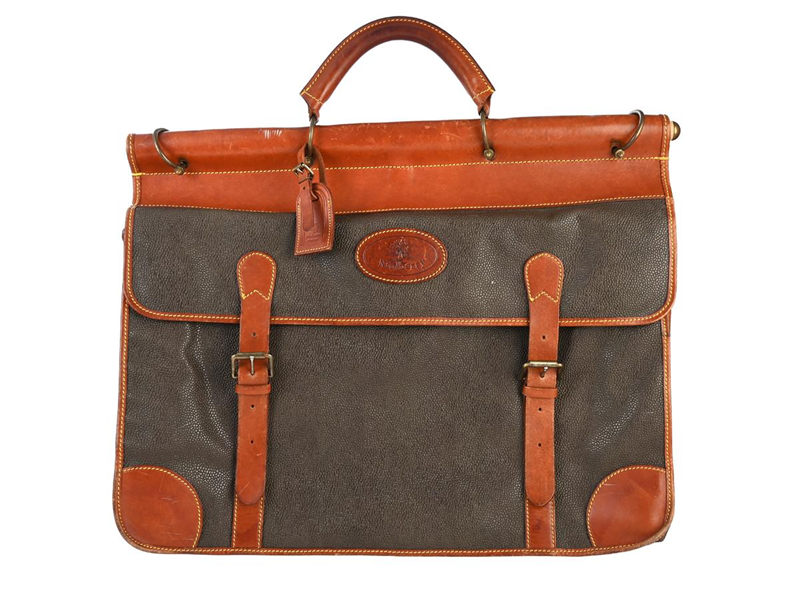 BAG, MULBERRY, scotchgrain holdall, brown leather, brass-coloured hardware, 54x42x13 cm, signs of wear.