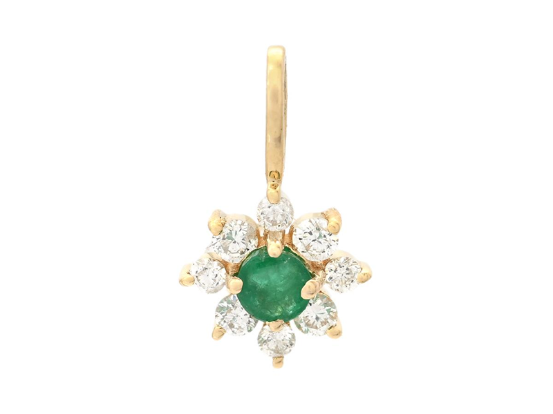 PENDANT, 18K white gold with emerald 0,07 ct, inclusions reach the surface, 8 brilliant cut diamonds 0,10 ctw, weight 0,4 g, width 6 mm
