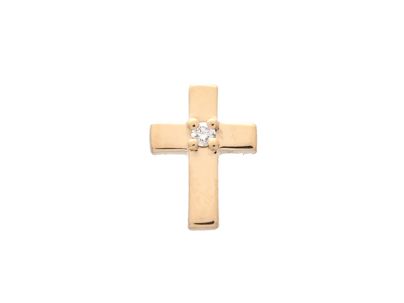 ONE EARRING, 18K gold, cross, brilliant cut diamond 0,01 ct, approx. W/VS, pushback, measurements approx. 6,5 x 5,0 mm, weight 0,4 g.