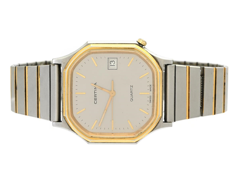 CERTINA, men´s wristwatch, 32 x 31 mm, Case no. 184.1010.43, men´s wristwatch, bicolour, quartz (not working), mineral crystal, date, approx. 1985, metal bracelet not original.