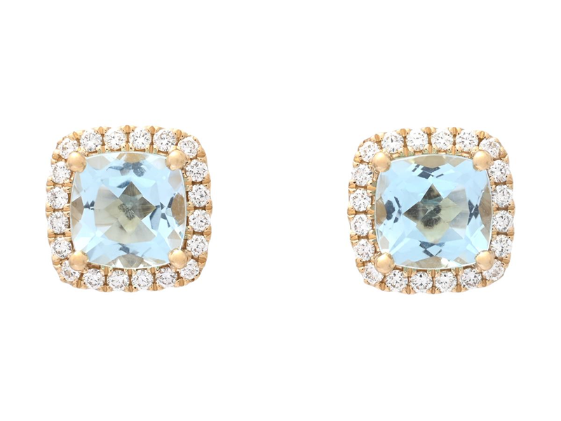 EARRINGS, 18K gold with cushion cut blue topazes 3,90 ctw, 40 brilliant cut diamonds 0,40 ctw, approx. TW-W/SI, pushback, weight 4,6 g