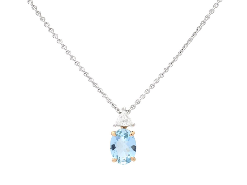 PENDANT/CHAIN, 18K white gold, oval aquamarine 0,60 ct, single cut diamonds 0,08 ctw, approx. TW-W/VS, weight 2,7 g length 41 cm