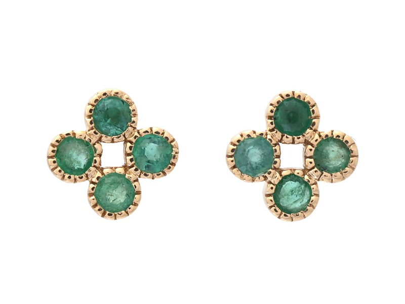 EARRINGS, 18K gold, 8 faceted emeralds approx. 0,24 ctw, pushback, measurements 5,0 x 5,0 mm, weight 1,0 g.