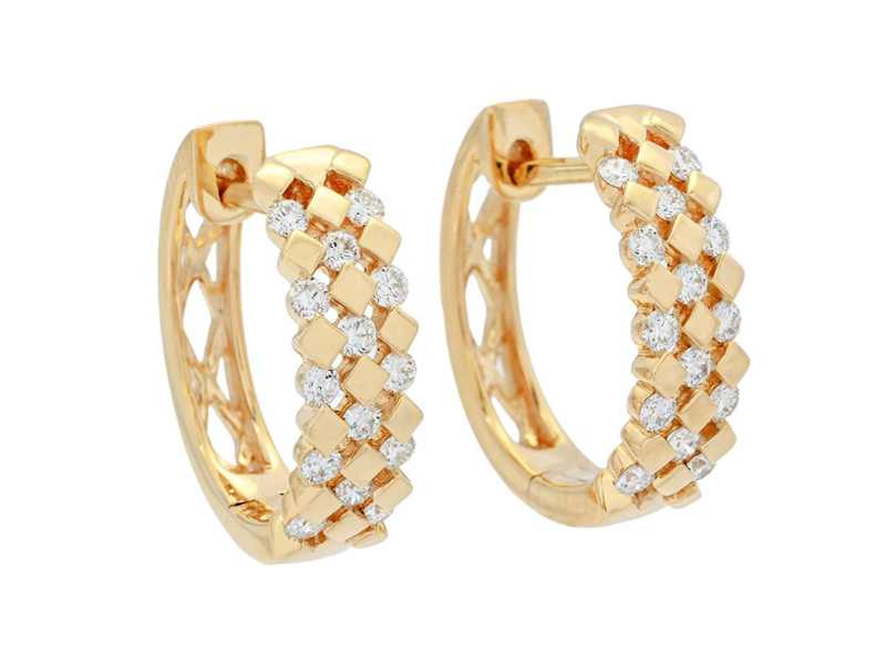 HOOP EARRINGS, 18K gold, 28 brilliant cut diamonds 0,32 ctw, approx. TW/VS, pushback, height 15,0 mm, width 4,0 mm, weight 3,5 g.