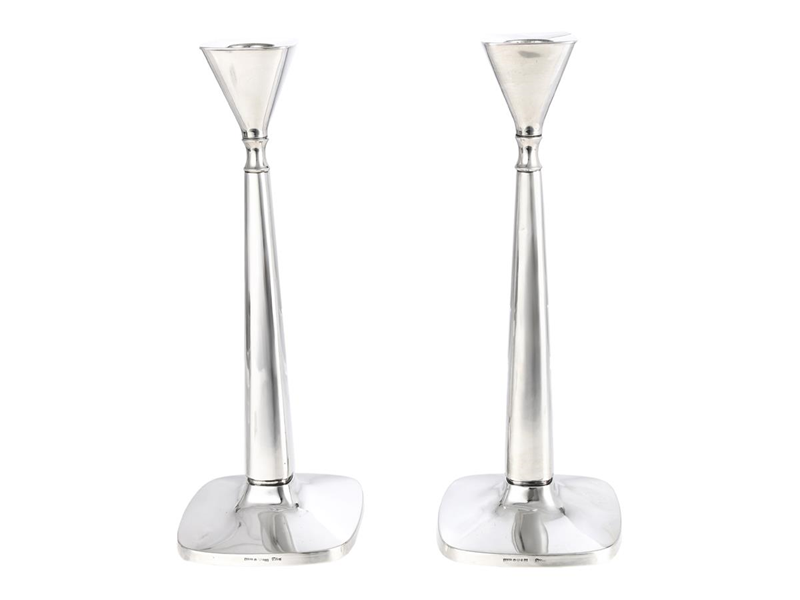 T Eldh, candlesticks, silver, Ceson, Gothenburg 1966, height 24 cm, weight 519,6 g, filled bottom, small dent on the stem.
