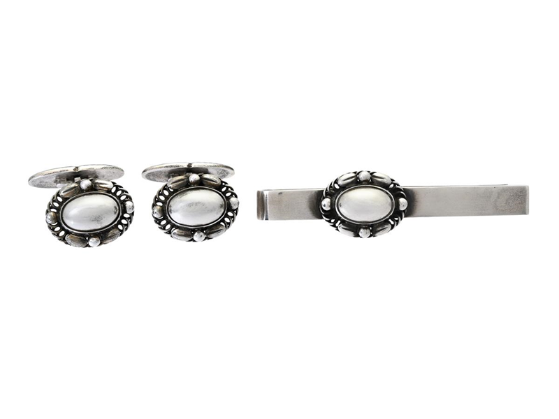 GEORG JENSEN, tie pin and cufflinks, design no 17, sterling silver, weight 26,8 g, case.