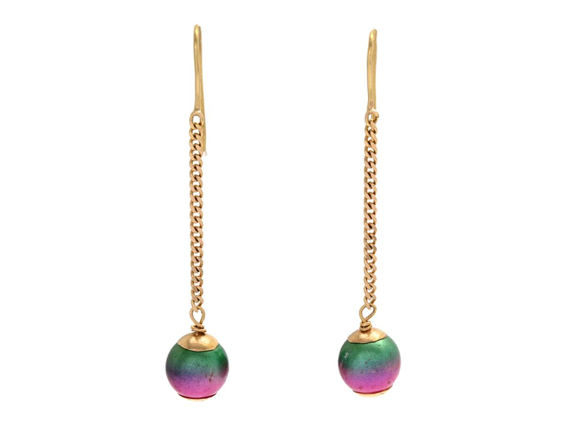 EARRINGS, 18K gold, dyed imitation pearls, height 70 mm, weight 7,4 g, hooks.