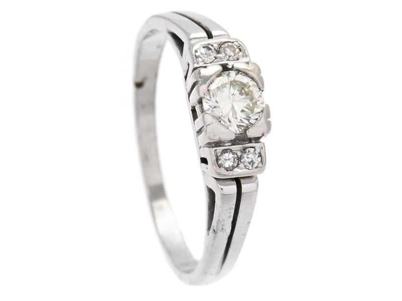 RING, 18K white gold, brilliant cut diamond approx. 0,30 ct, approx. TCa/VS, 4 single cut diamonds 0,06 ctw, size 17,75 mm, weight 3,9 g, weak settings.