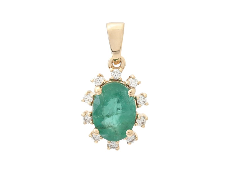 CLUSTER PENDANT, 18K gold with emerald 0,74 ct, inclusions reach the surface, briljantsliapde diamonds approx. W-TCr/SI-P, weight 0,9 g