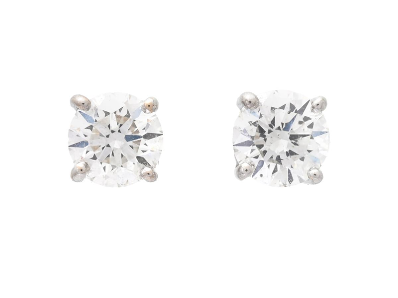 SOLITAIRE EARRINGS, 18K white gold, brilliant cut diamonds approx. 0,72 ctw, approx. W-TCr/SI, weight 1,4 g, pushback.