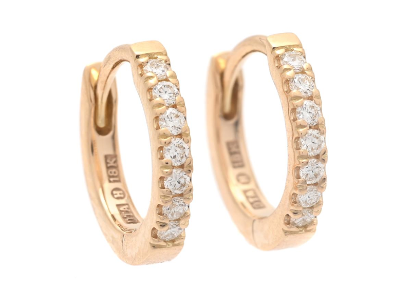 HOOP EARRINGS, 18K gold, 14 brilliant cut diamonds approx. 0,12 ctw, approx. TW-W/VS, pushback, diameter 11,0 mm, weight 1,8 g.
