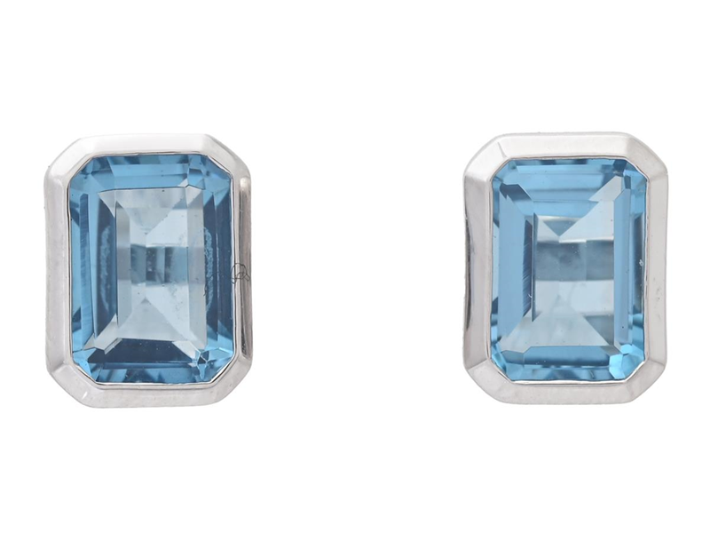 EARRINGS, 18K white gold, octagonal faceted blue topazes 2,30 ctw, pushback, measurements 8,0 x 6,0 mm, weight 2,1 g.