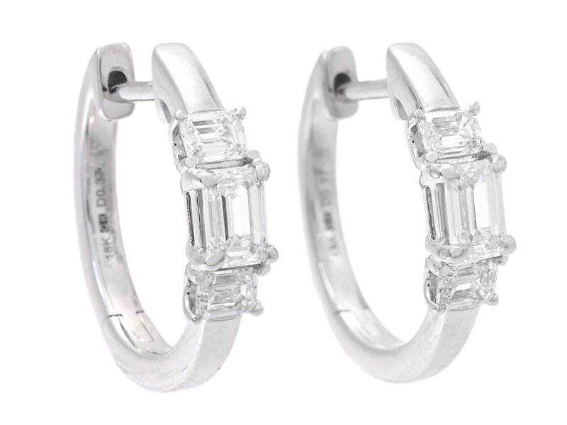 HOOP EARRINGS, 18K white gold, 6 emerald cut diamonds 0,74 ctw, approx. TW/VS, pushback, height 15,0 mm, weight 3,5 g.