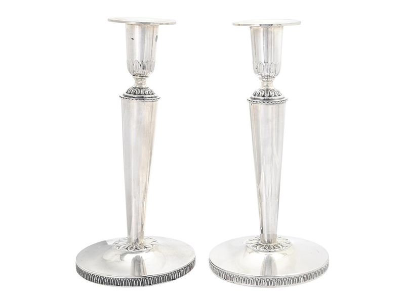 CANDLESTICKS, silver, Ceson, Gothenburg, 1975, height 18 cm, weight 379,6 g, filled bottom, small dents.