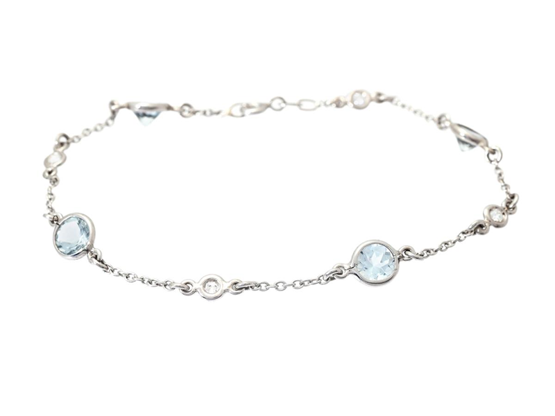 BRACELET, 18K white gold, aquamarines, brilliant cut diamonds approx. 0,38 ctw, approx. TW/VS, length 20 cm, weight 4,6 g, some aquamarines with notches.