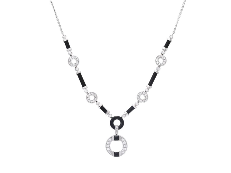 NECKLACE, 18K white gold, black agate, 65 brilliant cut diamonds 0,35 ctw, approx. TW-TCr/VS-SI, adjustable length, maximum 45 cm, weight 8,2 g.