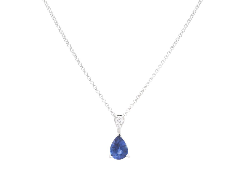 NECKLACE, 18K white gold, drop shaped faceted sapphire 0,88 ct, 2 brilliant cut diamonds 0,06 ctw, approx. TW-W/VS-SI, height 12,5 mm, chain 42/45 cm, weight 2,9 g.