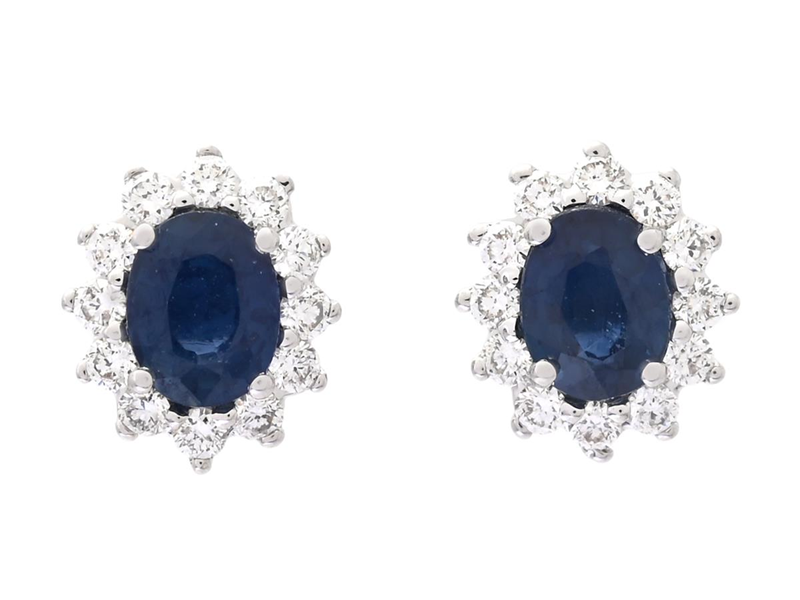 EARRINGS, 18K white gold with oval blue sapphires 0,49 ctw 24 brilliant cut diamonds 0,14 ctw W/SI, pushback