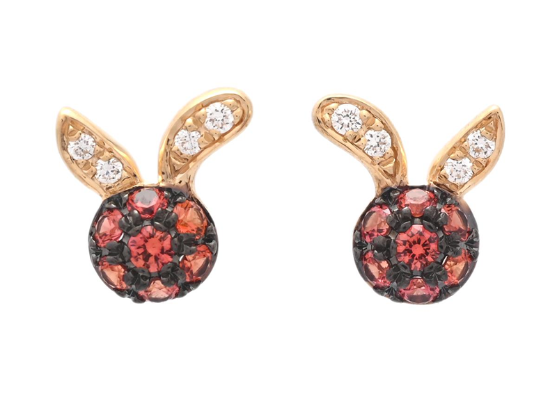 EARRINGS, 18K gold with 14 orange sapphires 0,22 ctw 8 brilliant cut diamonds 0,08 ctw, approx. W/SI, pushback