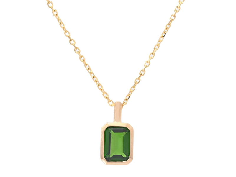 PENDANT/CHAIN, 18K gold, octagonal faceted chrome diopside 0,91 ct, height 12,0 mm, chain 42/45 cm, weight 2,7 g.