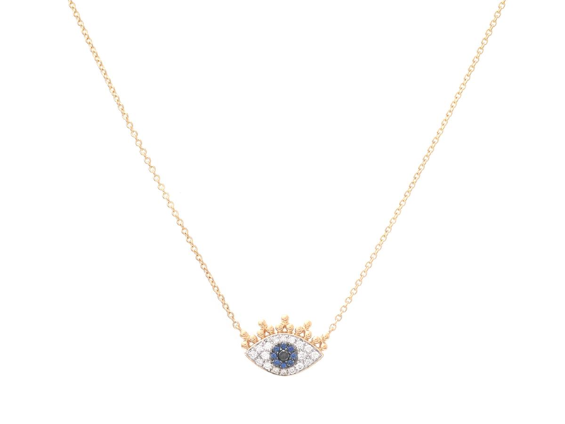 NECKLACE, 18K gold, eye, black brilliant cut diamond 0,02 ct, 8 round faceted sapphires 0,02 ctw, 18 brilliant cut diamonds 0,08 ctw, approx. TW-W/VS, width 12,0 mm, length 40/42 cm, weight 2,5 g.