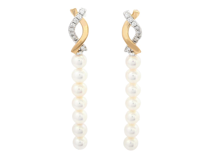PEARL EARRINGS, 18K gold/white gold, cultured freshwater pearls, 16 brilliant cut diamonds 0,13 ctw, approx. TW-W/VS-SI, pushback, length 40,0 mm, weight 3,9 g.