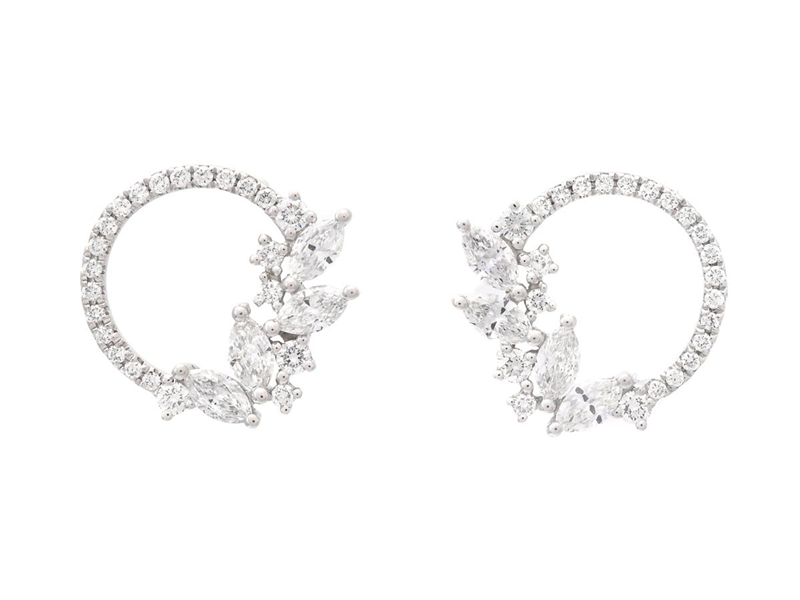 EARRINGS, 18K white gold, 8 marquise cut diamonds 0,54 ctw, 46 brilliant cut diamonds 0,28 ctw, approx. TW/VS, pushback, height 12,0 mm, weight 2,8 g.