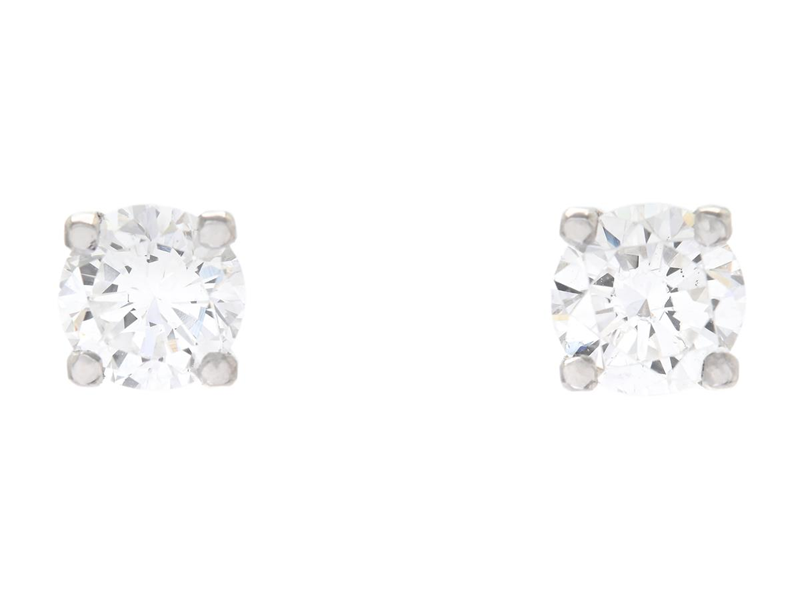 SOLITAIRE EARRINGS, 18K white gold, 2 brilliant cut diamonds approx. 0,99 ctw, approx. TW(F)/VS1-VS2, weight 1,4 g, pushback, notch on culets.