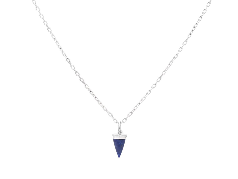 NECKLACE, 18K white gold, lapis lazuli 0,31 ct, 5 brilliant cut diamonds 0,03 ctw, approx. TW/VS, height 7,0 mm, length 42/45 cm, weight 1,9 g.