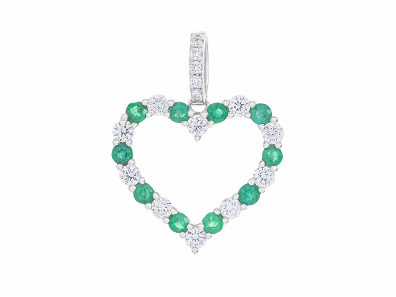 PENDANT, 18K white gold, heart, 10 emeralds approx. 0,25 ctw, 15 brilliant cut diamonds approx. 0,27 ctw, 18,5x14,3 mm, weight 1,3 g.
