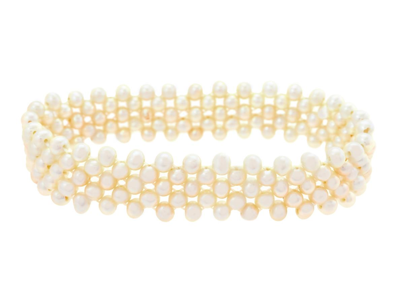 PEARL BRACELET, cultured freshwater pearls approx. 3,0 - 4,0 mm, five intertwined rows, elastic tread, length approx. 18 cm.